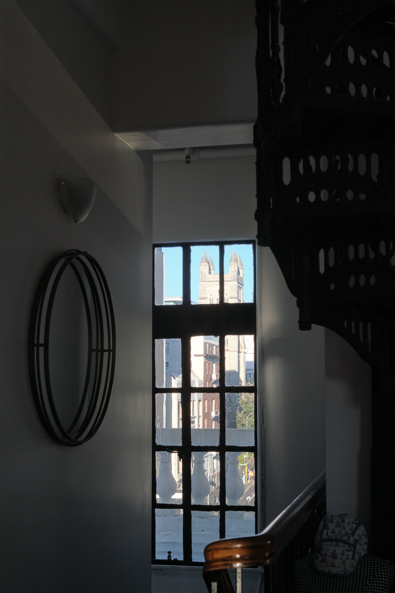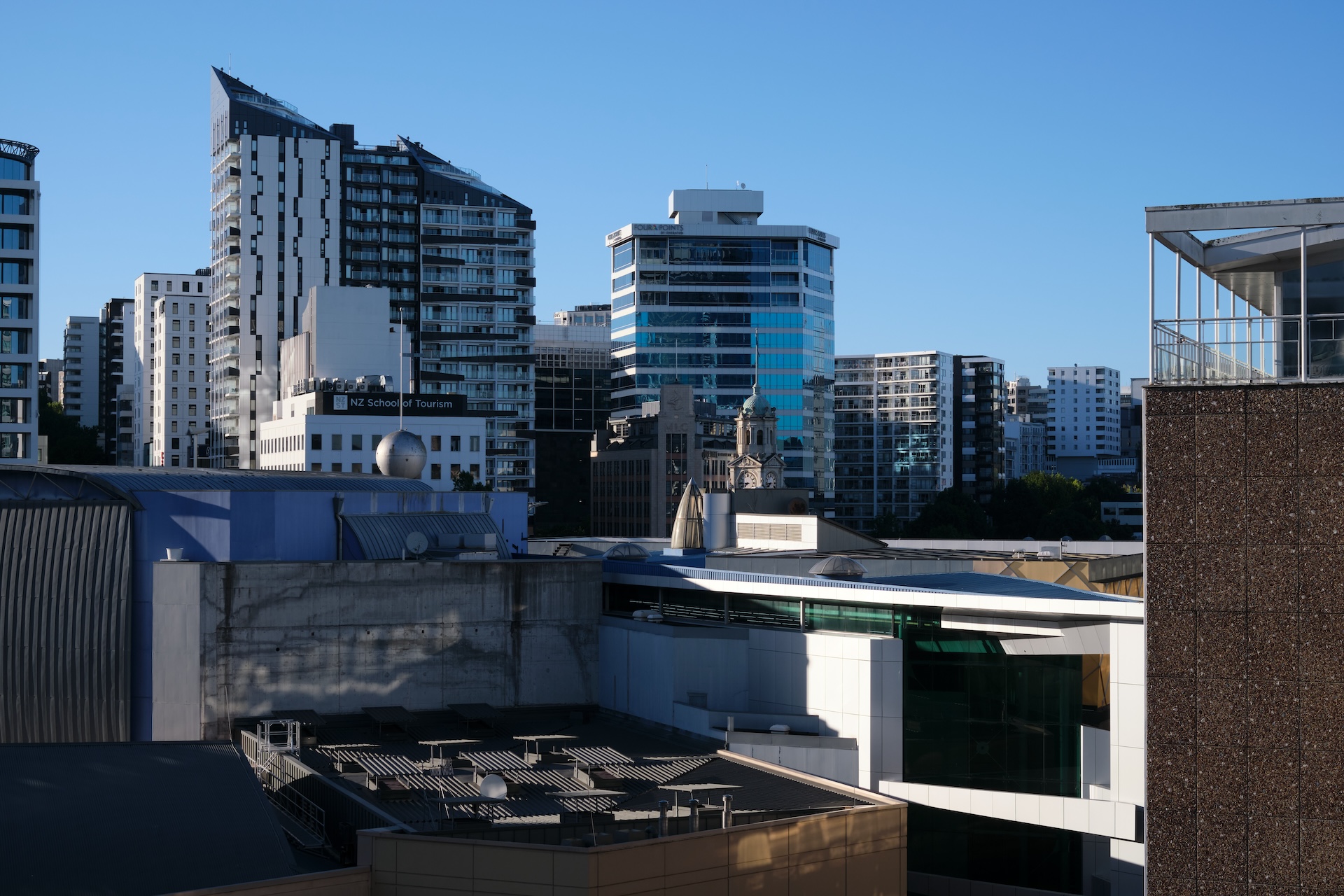 After 14 hours on a plane with oodles of food and simulated darkness (what time is it anyway, when you cross nine time zones and the international date line?), we landed in hot and windy Sydney. The hotel, albeit very nice and clean, felt like empty space, since we had completely lost track of date and time. Somehow, we managed to sleep at the time we were supposed to, got breakfast in time (full English breakfast makes for excellent brinner), got on the next plane, and made it through immigration including having our tent inspected in the lab. Around midnight, we finally reached our quirky appartement in downtown Auckland. Situated on top of a turn-of-the-century hotel building, we enjoyed not only a remarkable interior design with a layout of three floors with an iron spiral staircase in between, but also an amazing view over the central business district. Sometimes, you get really lucky on Airbnb.