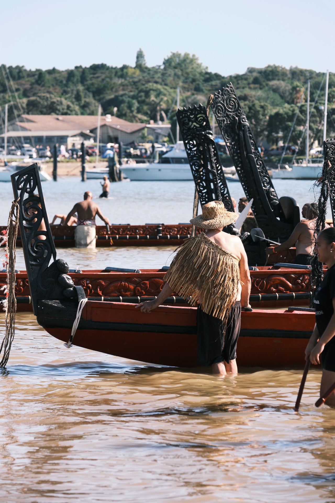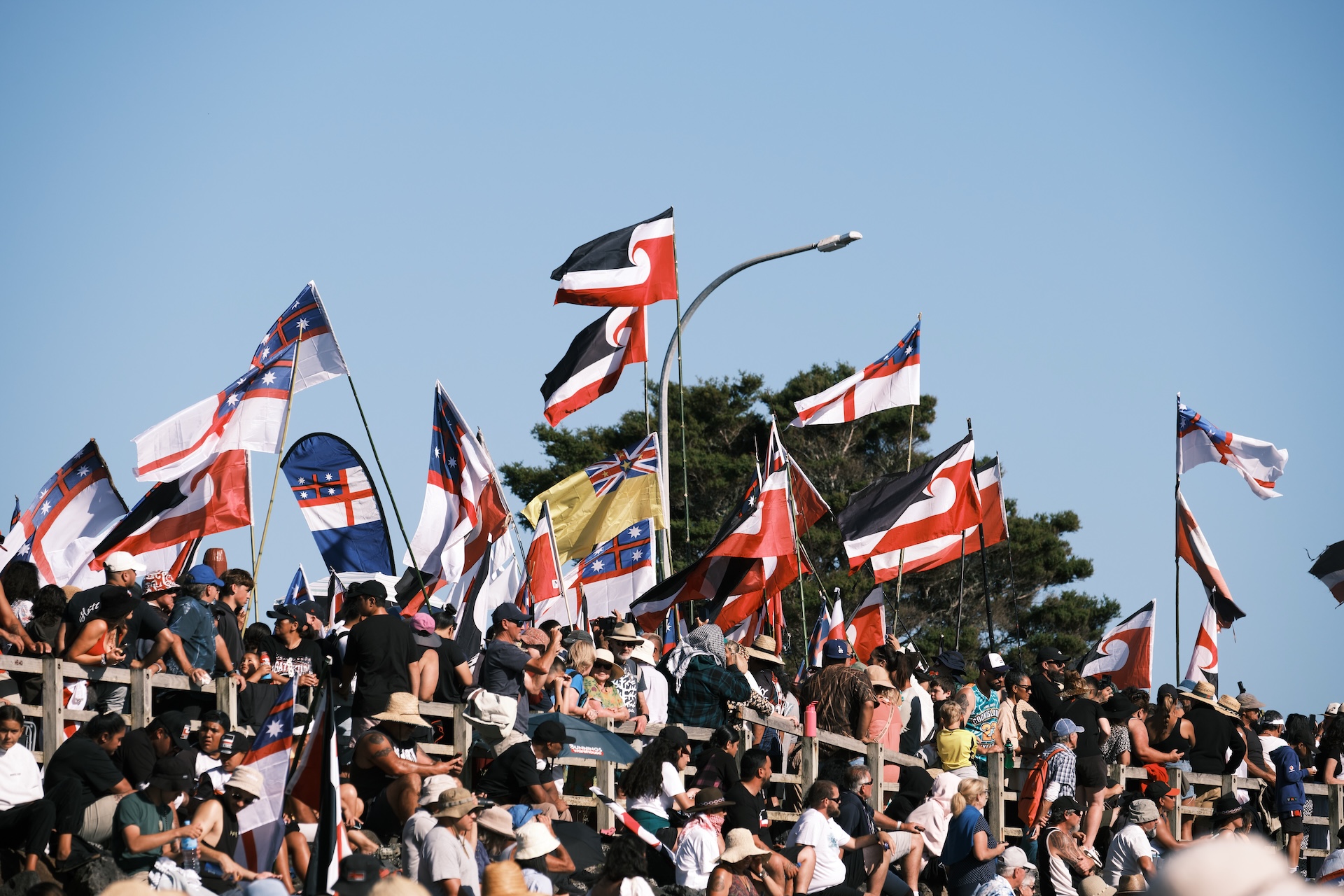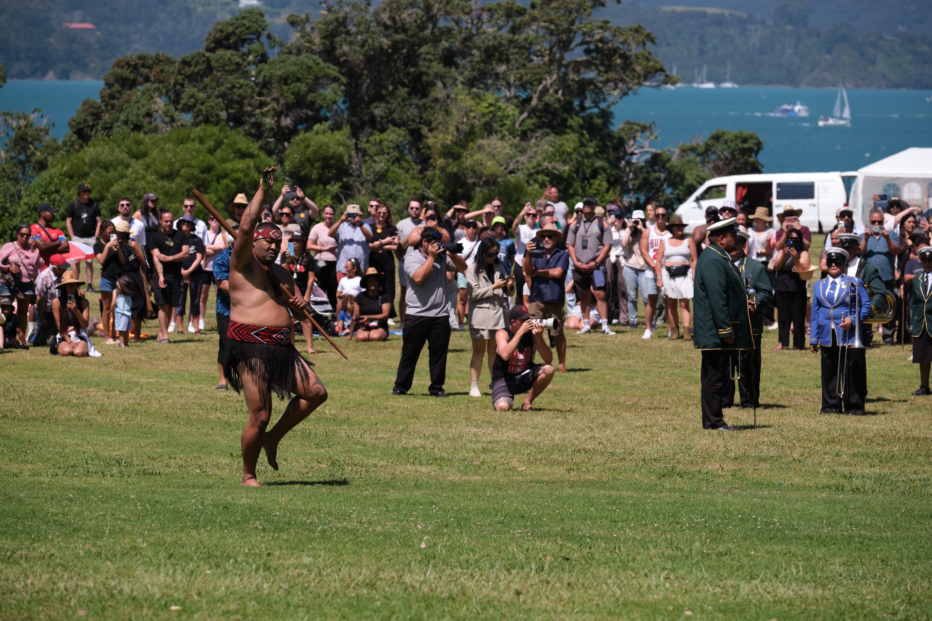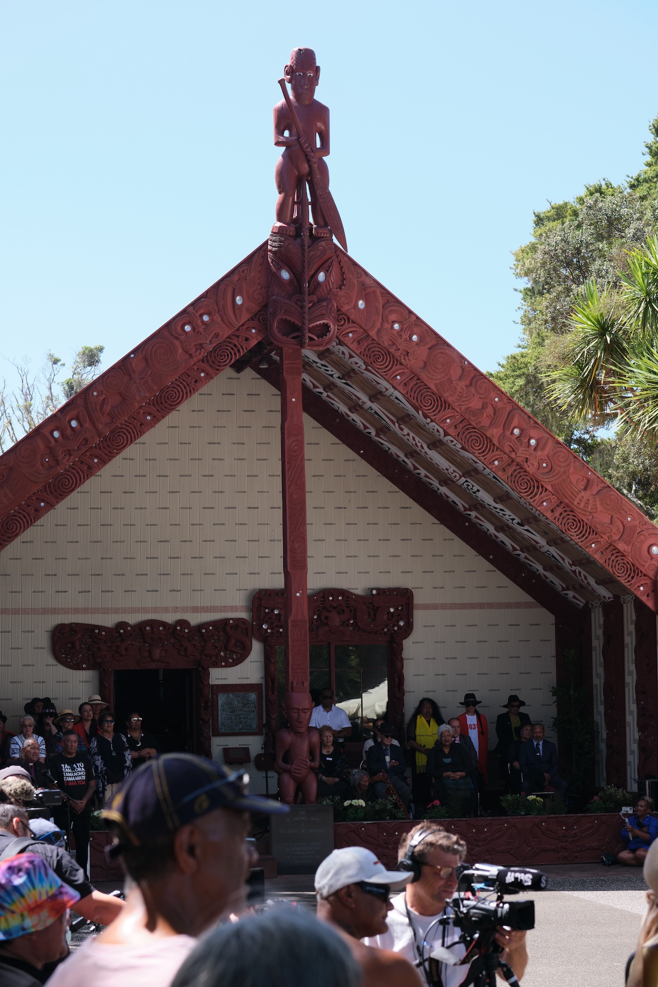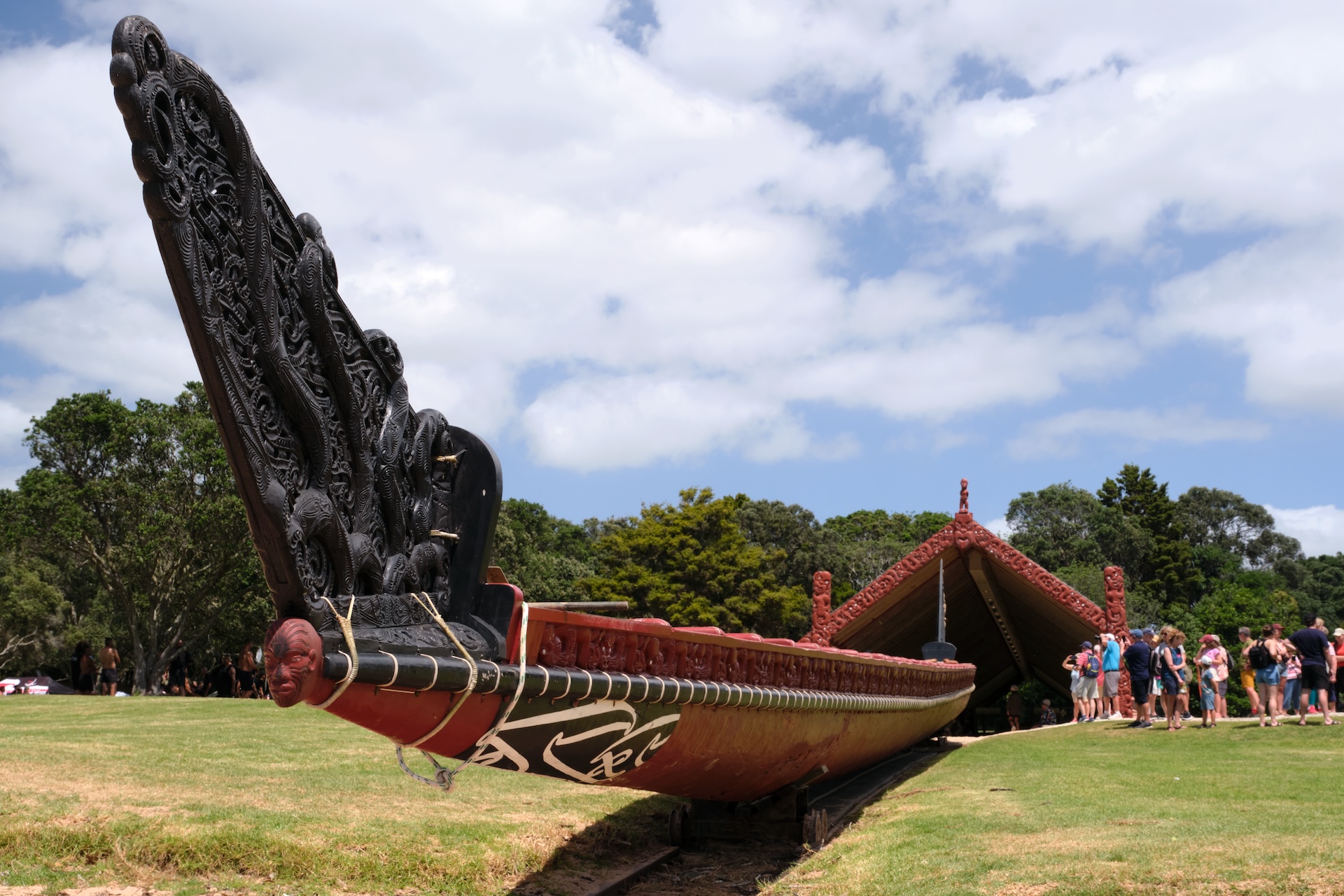 I will not go into further detail about all the fantastic campsites, beaches, waterfalls, and hikes we experienced, but I want to share one very special moment with you: Waitangi Day. The national holiday on 6 February marks the signing of a treaty between the Māori and the British and thus the founding of the nation (more info here). It is celebrated around the country, but especially in a place called Waitangi with thousands of Māori congregating on the historical premises for political discussions, prayers, song, dance, and commemoration. The multi-day festival is open to the public and frequented by New Zealanders of any descent and tourists alike, however, it is an occasion for Māori especially to express their political demands. As a response to the political development over the past months, this year’s Waitangi Day was bound to be a particularly important one. This is why we found ourselves among 50,000 people peacefully protesting and celebrating the national holiday in the epicentre of Waitangi. What was really striking was the solemn and calm atmosphere and the orderly coexistence of Māori protesters, spectators, officials, kids, and adults of all walks of life at all times. There was no evidence of violence at all. Imagine this in any other part of the world.