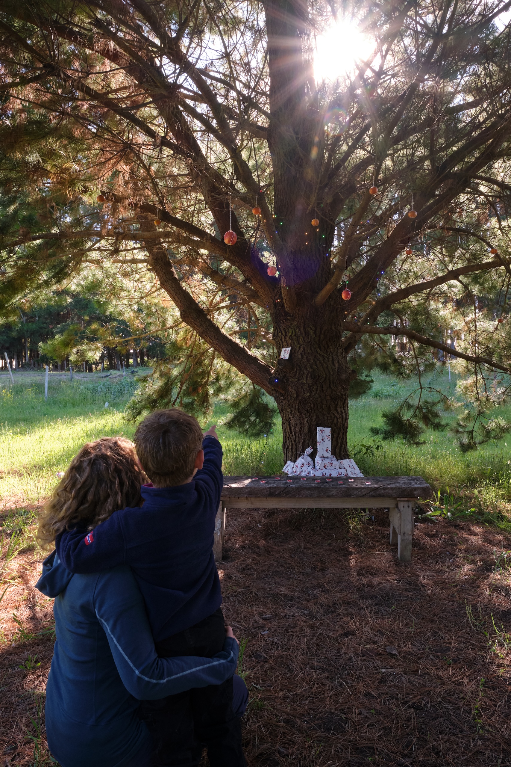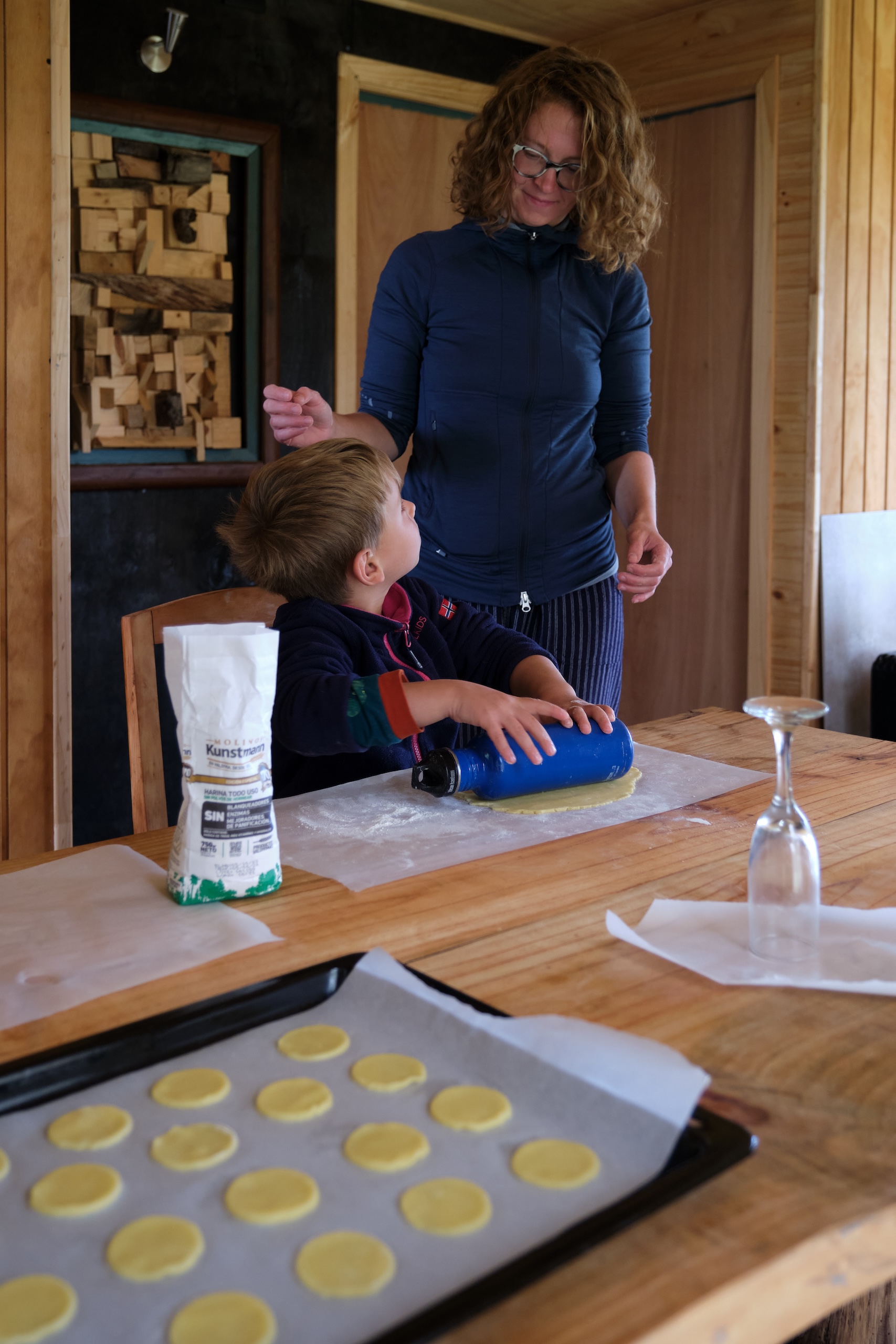 Celebrating Christmas in summer. The biggest question and trembling uncertainty for our five-year-old son during all our travels so far, was if Christkind will find us in Chile and bring presents. Deeply believing in something magical and being enchanted easily is one of the most precious things about his age, I think, but also a big challenge for parents. Especially when away from home without grandparents and kindergarten. So, it’s improvising and being creative with what’s available once again. Back in Mendoza, Sebastian and I thought about an Adventkranz that is easily transportable. We reduced it to the bare minimum of four small candles and had to choose between scented or swimming ones. From this point on, we would set up our floating Adventkranz in every accommodation we stayed in. You travel so you learn. Now I know that Adventkalender are common in Austria and Germany but not at all in Chile or Argentina. My solution was to draw my own, where our son would colour one drawing every day until the whole picture is colourful and Christmas has arrived.
